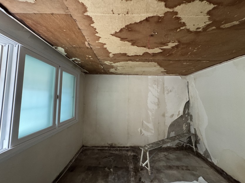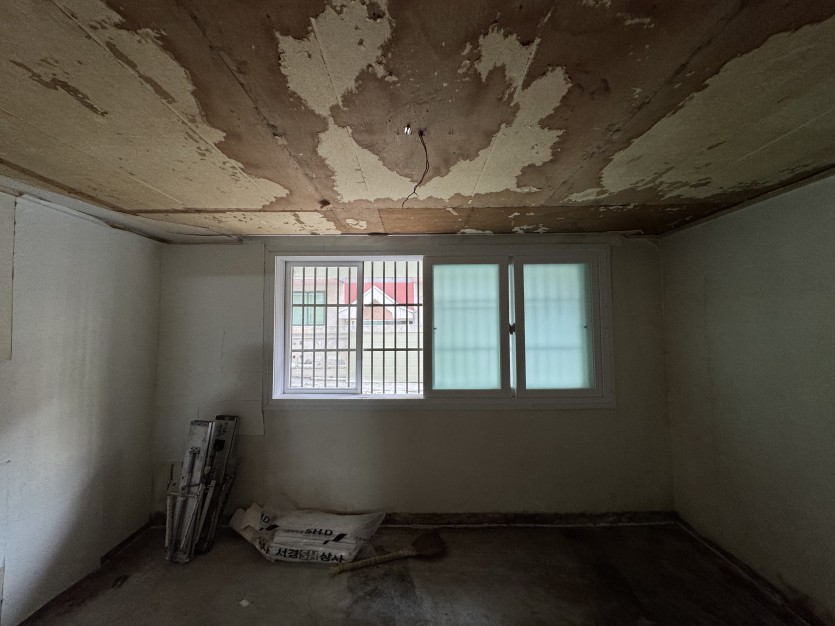 낡은 합판 천장 여기저기에서 누런 물이 배어나오는 상태였는데